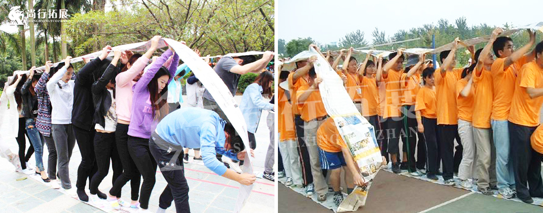 每個(gè)隊(duì)利用報(bào)紙,在規(guī)定時(shí)間內(nèi)做成一個(gè)超級(jí)風(fēng)火輪(坦克履帶),且要能夠帶動(dòng)所有隊(duì)員一起滾動(dòng)前進(jìn),由于道具有限,風(fēng)火輪要容下所有隊(duì)員,隊(duì)員們必須互相依靠與擁抱,在前行過程中需要大家強(qiáng)大的配合才能使風(fēng)火輪迅速滾動(dòng)。