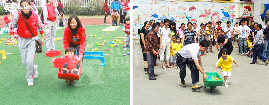 項(xiàng)目玩法:四個(gè)家庭為一組,孩子和家長(zhǎng)一起向前進(jìn),先到達(dá)終點(diǎn)的一組為勝。