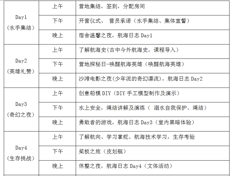 海洋,代表著壯闊、神秘和未知。人類第一次環(huán)球海洋航行的成功,意味著大航海時(shí)代的來臨,也代表著人類的勇敢、堅(jiān)毅和對(duì)世界的探索。每個(gè)孩子都有一個(gè)探索世界的夢(mèng)想。您是否愿意,讓孩子花七天六夜的時(shí)間,造一艘屬于孩子們的大船呢?讓孩子們完成一個(gè)為夢(mèng)想而創(chuàng)造的偉大工程,成為自己的夢(mèng)想工程師,在獲得一段引以為傲的童年經(jīng)歷的同時(shí),實(shí)現(xiàn)夢(mèng)寐以求的航海夢(mèng)!