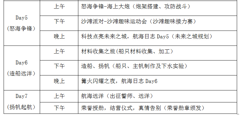 STEAM教育:營(yíng)會(huì)課程以STEAM教育為原則,通過造船航海為載體,將科學(xué)、技術(shù)、工程與藝術(shù)內(nèi)容融入課程其中;