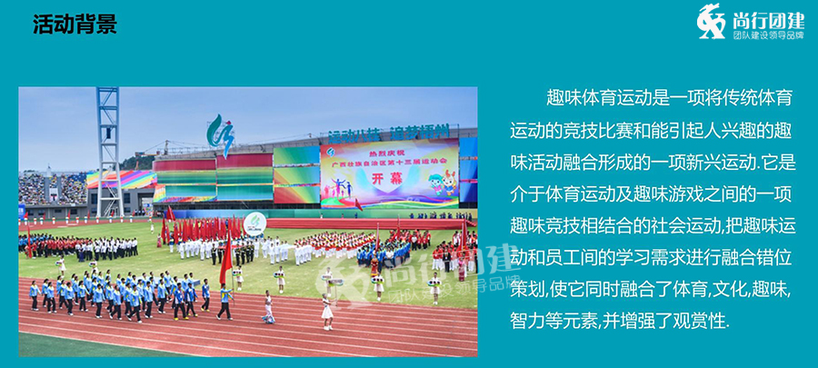 趣味運(yùn)動會兼顧了趣味性與團(tuán)隊(duì)性,即競技、娛樂、健身等綜合于一體的全新趣味訓(xùn)練活動。激發(fā)參與者團(tuán)隊(duì)協(xié)作、敢于拼搏、永爭第一的精神,玩中享受快樂,歡樂中得到收獲。