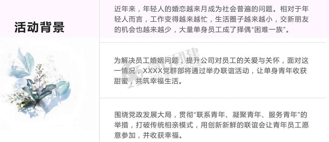 青年聯(lián)誼活動旨在通過各不同單位青年干部之間進(jìn)行活動豐富青年干部文化生活,增強各區(qū)直單位之間的聯(lián)系。為青年進(jìn)一步交流提供平臺,擴大活動成效。通過聯(lián)誼會搭建交流平臺,豐富了廣大青年的業(yè)余文化生活,增進(jìn)青年之間的聯(lián)系和友誼,為青年的相互溝通創(chuàng)造良好的氛圍。